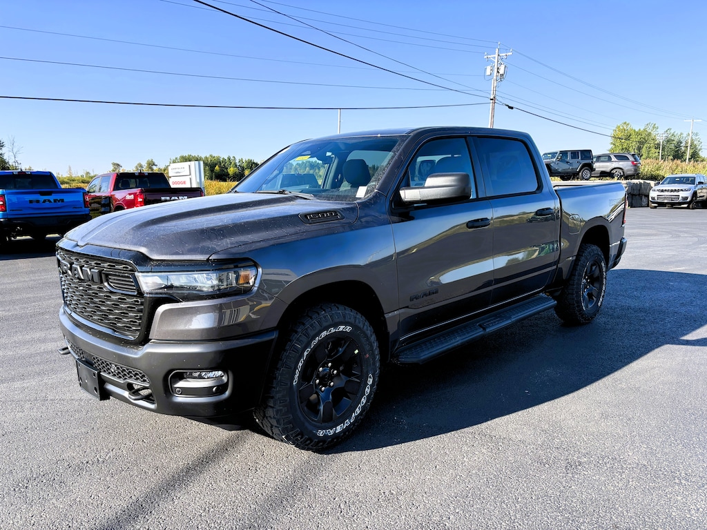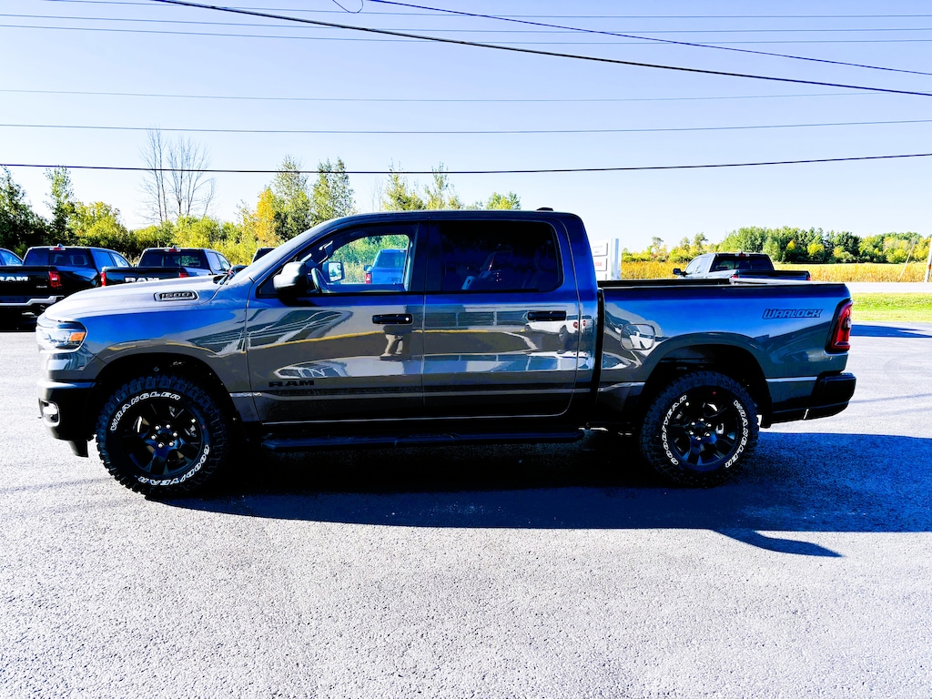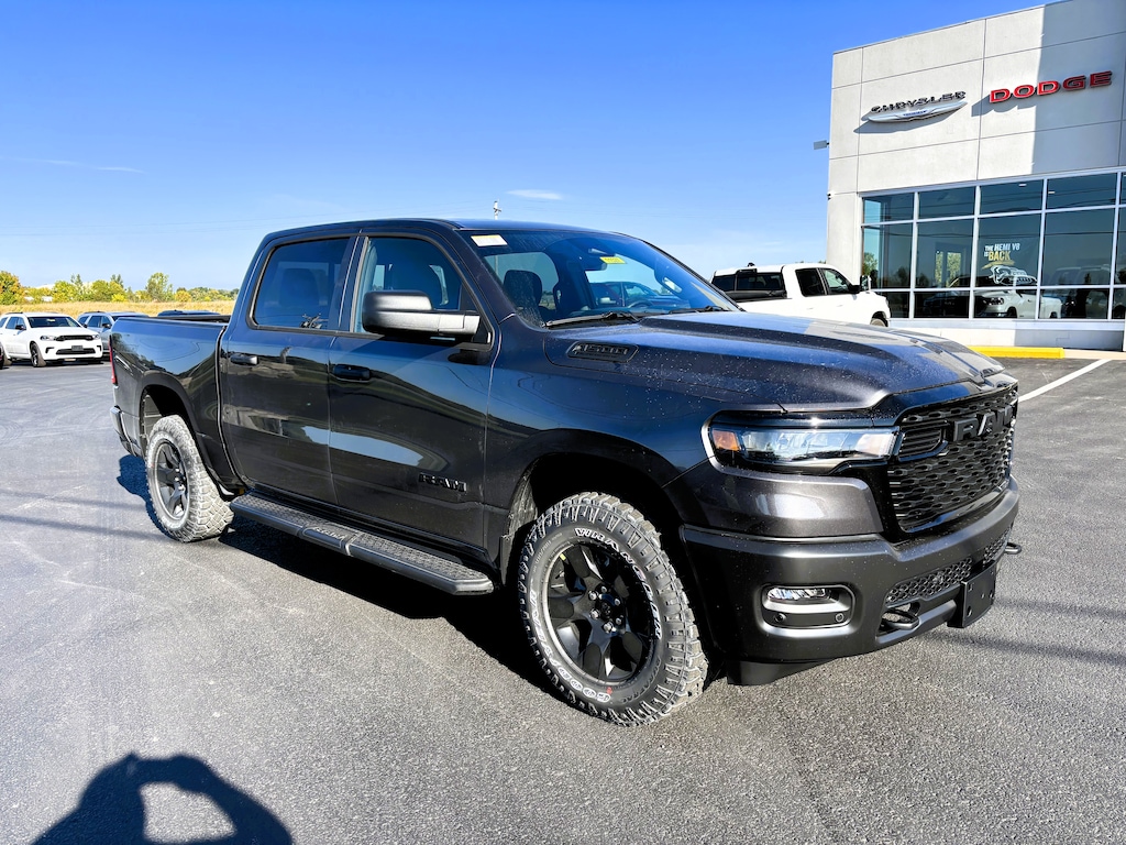 Vehicle is equipped with: Quick Order Package 21B Warlock (115V Auxiliary Power Outlet, 400W Inverter, Cluster 7.0" TFT Color Display, E-Locker Rear Axle, Front LED Fog Lamps, Front Performance Tuned Shock Absorbers, MOPAR Front & Rear Rubber Floor Mats, Raised Ride Height, Rear Performance Tuned Shock Absorbers, Selec-Speed Control, Tow Hooks, Warlock Decal, and Wheels: 18" x 8.0" Black Painted Aluminum), Tradesman Level 1 Equipment Group (2nd Row In Floor Storage Bins, Cloth Bench Seat, Front & Rear Floor Mats, Rear Power Sliding Window, SiriusXM Radio Service, and SiriusXM Satellite Radio), 4 Way Front Headrests, 4-Wheel Disc Brakes, 48V Belt Starter Generator, 4G LTE Wi-Fi Hot Spot, 6 Speakers, ABS brakes, Air Conditioning, AM/FM radio, Apple CarPlay, Apple CarPlay/Android Auto, Auto High-beam Headlights, Black Exterior Mirrors, Brake assist, Compass, Connectivity - US/Canada, Delay-off headlights, Driver door bin, Dual front impact airbags, Dual front side impact airbags, Electronic Stability Control, Exterior Mirrors w/Heating Element, For Details Visit DriveUconnect.com, Front anti-roll bar, Front Center Armrest, Front License Plate Bracket, Front reading lights, Front wheel independent suspension, Fully automatic headlights, Global Telematics Box Module (TBM), Google Android Auto, GPS Antenna Input, Heated door mirrors, Heavy Duty Vinyl 40/20/40 Split Bench Seat, Illuminated entry, Integrated Center Stack Radio, Integrated Voice Command w/Bluetooth, Low tire pressure warning, Manual Adjust 4-Way Driver Seat, Manual Adjust 4-Way Front Passenger Seat, Manual Folding Exterior Mirrors, Manufacturer's Statement of Origin, Mopar Black Tubular Side Steps, Occupant sensing airbag, Outside temperature display, Overhead airbag, Overhead console, Panic alarm, ParkView Rear Back-Up Camera, Passenger door bin, Passenger vanity mirror, Power door mirrors, Power steering, Power windows, Radio data system, Radio: Uconnect 5 W w/8.4" Display, Rear anti-roll bar, Rear Folding Seat, Rear step bumper, Remote keyless entry, Speed control, Supplier Part Tracking (J-1), Tachometer, Telescoping steering wheel, Tilt steering wheel, Traction control, Trailer Brake Control, USB Host Flip, Variably intermittent wipers, Voltmeter, and Wheels: 18" x 7.5" Steel PainteD.