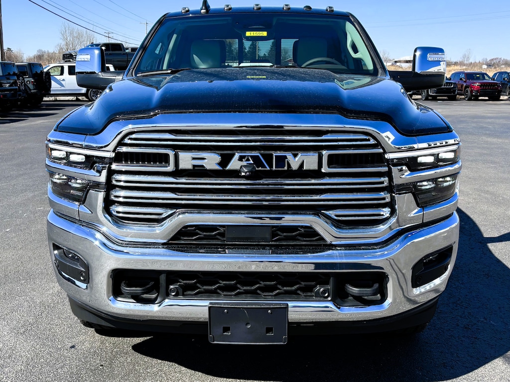 Vehicle is equipped with: Chrome Bumper Package (Bright Front Bumper and Bright Rear Bumper), Laramie Level 2 Plus Equipment Group (#1 Seat Foam Cushion, 115V Auxiliary Rear Power Outlet, 14.4" Touchscreen Display, 17 Speaker Harman/Kardon Premium Sound, 2 Way Rear Headrest Seat, 2nd Row in Floor Storage Bins, 4 Way Front Headrests, 4G LTE Wi-Fi Hot Spot, Active Lane Management System, Adaptive Steering System, Alexa Built-in, Apple CarPlay, Auto Adjust in Reverse Exterior Mirrors, Auto Dimming Exterior Passenger Mirror, Auto High Beam Headlamp Control, Auto Power-Folding Mirrors, Auto-Dimming Exterior Mirrors, Bucket Seats, Center Stop Lamp with Cargo View Camera, Chrome Exterior Mirrors, Connected Travel and Traffic Services, Connectivity - US/Canada, Disassociated Touchscreen Display, Drowsy Driver Detection, Dual Wireless Charging Pad, Emergency Vehicle Alert System (EVAS), Exterior Mirrors Courtesy Lamps, Exterior Mirrors with Heating Element, Exterior Mirrors with Memory, Exterior Mirrors with Supplemental Signals, Foam Bottle Insert (door Trim Panel), Folding Flat Load Floor Storage, For Details Visit DriveUconnect.com, For More Info, Call 800-643-2112, Forward and Reverse Utility Lights, Front Seat Back Map Pockets, Full Length Upgraded Floor Console, Global Telematics Box Module, Google Android Auto, GPS Antenna Input, GPS Navigation, HD Radio, Heated Front Seats, Heated Steering Wheel, High Back Seats, Integrated Voice Command with Bluetooth, Leather Trimmed Bucket Seats, LED Bed Lighting, Mirror Running Lights, MOPAR Deployable Bed Step, MOPAR Spray in Bedliner, Off-Road Information Pages, Power 2-Way Driver Lumbar Adjust, Power 2-Way Passenger Lumbar Adjust, Power Adjust 8-Way Driver Seat, Power Adjust 8-Way Front Passenger Seat, Power Adjust Mirrors, Power Adjustable Pedals with Memory, Power Deployable Running Boards, Power Heat Fold Memory Telescopic Mirrors, Power Telescoping Mirrors, Power-Adjustable Convex Aux Mirrors, Radio: Uconnect 5 Nav with 14.4" Display, Radio/Driver Seat/Mirrors/Pedals Memory, Rain Sensitive Windshield Wipers, Rear 60/40 Folding Seat, Remote Tailgate Release, Selectable Tire Fill Alert, SiriusXM Radio Service, SiriusXM with 360L, Traffic Sign Recognition, Trailer Tow Pages, and Ventilated Front Seats), Quick Order Package 24H Laramie, Towing Technology Group (MOPAR Trailer Camera Wiring with No Camera, Surround View Camera System, Trailer Reverse Guidance, and Trailer Tire Pressure Monitoring System), 10 Speakers, 4-Wheel Disc Brakes, 5th Wheel/Gooseneck Towing Prep Group, ABS brakes, Air Conditioning, Alloy wheels, AM/FM radio: SiriusXM with 360L, Apple CarPlay/Android Auto, Auto-dimming Rear-View mirror, Automatic temperature control, Black Wheel Center Hub, Brake assist, Bumpers: body-color, Clearance Lamps, Compass, Delay-off headlights, Driver door bin, Driver vanity mirror, Dual front impact airbags, Dual front side impact airbags, Electronic Stability Control, Front anti-roll bar, Front Center Armrest w/Storage, Front dual zone A/C, Front fog lights, Front License Plate Bracket, Front reading lights, Fully automatic headlights, Garage door transmitter, Heated door mirrors, Heated front seats, Heated steering wheel, Illuminated entry, Leather Trim 40/20/40 Bench Seat, Low tire pressure warning, MOPAR Front and Rear Rubber Floor Mats, MyFlexCare Service Diesel, Navigation System, Occupant sensing airbag, Outside temperature display, Overhead airbag, Overhead console, Panic alarm, ParkView Rear Back-Up Camera, Passenger door bin, Passenger vanity mirror, Power door mirrors, Power driver seat, Power passenger seat, Power steering, Power windows, Radio data system, Radio: Uconnect 5 Navigation with 12.0" Display, Rear reading lights, Rear seat center armrest, Rear step bumper, Rear window defroster, Remote keyless entry, Security system, Speed control, Split folding rear seat, Steering wheel mo