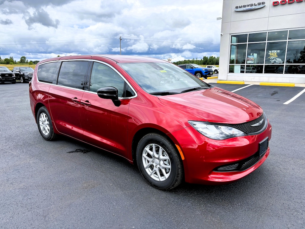 Red Hot Pearlcoat 2025 Chrysler Voyager LX FWD 9-Speed 948TE Automatic 3.6L V6 24V VVT Vehicle is equipped with: Quick Order Package 27E, 17" x 7" Aluminum Wheels, 3.25 Axle Ratio, 3rd row seats: split-bench, 4-Wheel Disc Brakes, 6 Speakers, ABS brakes, Air Conditioning, Alloy wheels, AM/FM radio: SiriusXM, Apple CarPlay/Android Auto, Automatic temperature control, Black Seats, Brake assist, Bumpers: body-color, Caprice Leatherette Bucket Seats, Compass, Delay-off headlights, Driver door bin, Driver vanity mirror, Driver's Seat Mounted Armrest, Dual front impact airbags, Dual front side impact airbags, Electronic Stability Control, Emergency communication system: Chrysler Connect, Four wheel independent suspension, Front anti-roll bar, Front Bucket Seats, Front dual zone A/C, Front reading lights, Fully automatic headlights, Heated door mirrors, Heated front seats, Heated steering wheel, Illuminated entry, Knee airbag, Low tire pressure warning, Occupant sensing airbag, Outside temperature display, Overhead airbag, Overhead console, Panic alarm, ParkView Rear Back-Up Camera, Passenger door bin, Passenger seat mounted armrest, Passenger vanity mirror, Power door mirrors, Power driver seat, Power Liftgate, Power steering, Power windows, Radio data system, Radio: Uconnect 5 w/10.1" Display, Rain sensing wipers, Rear air conditioning, Rear window defroster, Rear window wiper, Reclining 3rd row seat, Remote keyless entry, Security system, Speed control, Split folding rear seat, Spoiler, Steering wheel mounted audio controls, Tachometer, Telescoping steering wheel, Tilt steering wheel, Touring Suspension, Traction control, Trip computer, Turn signal indicator mirrors, Variably intermittent wipers, and Voltmeter.