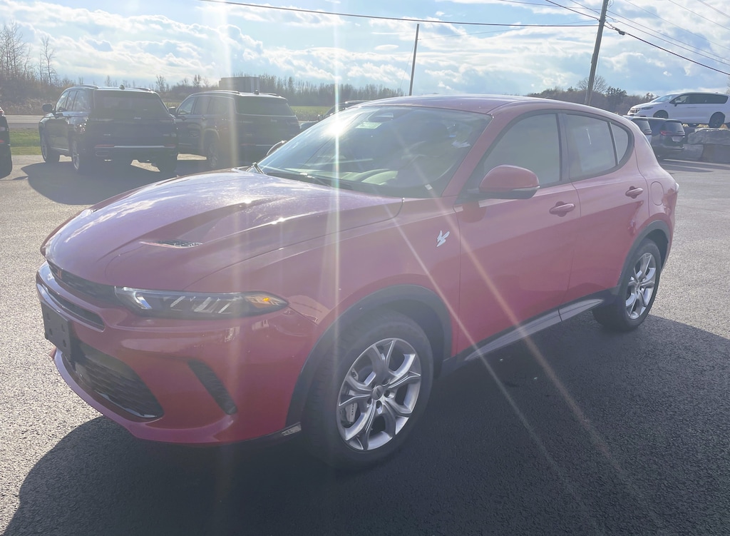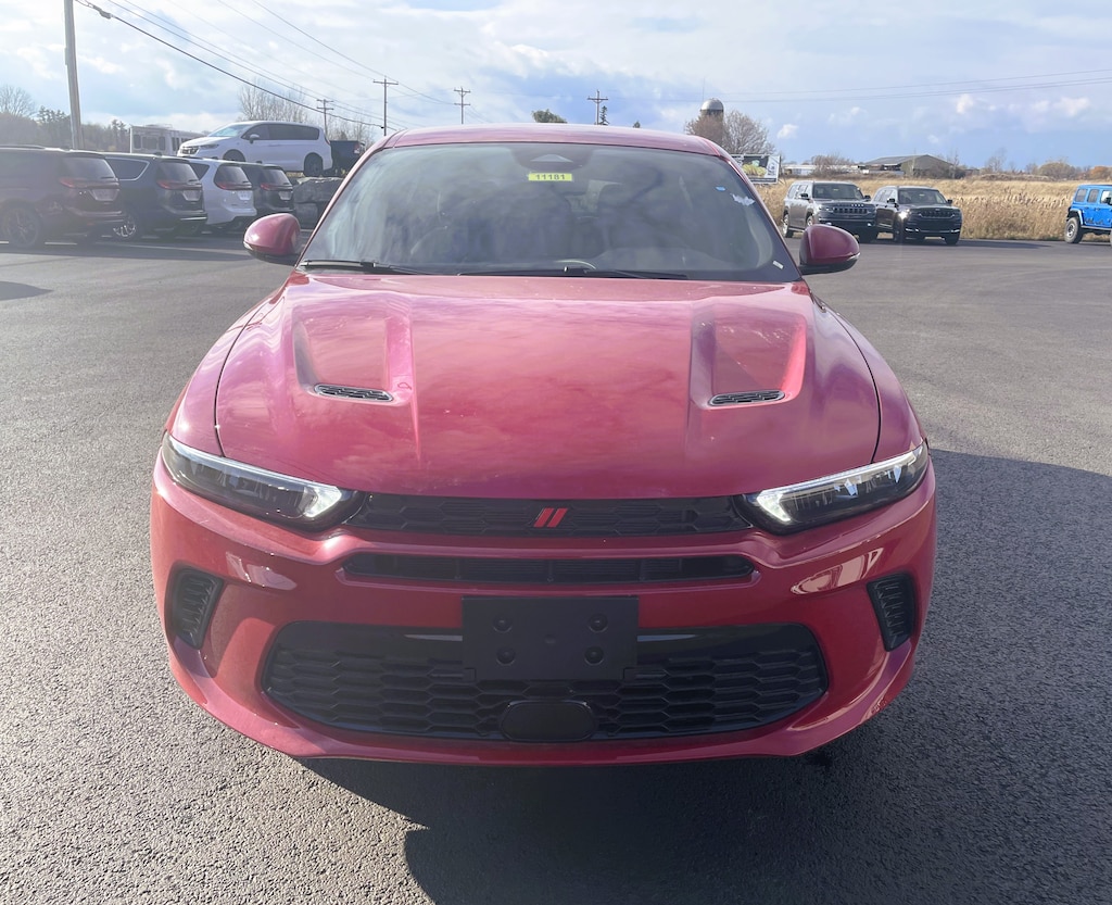 Hot Tamale 2024 Dodge Hornet R/T AWD 6-Speed Automatic 1.3L I4 Vehicle is equipped with: Quick Order Package 28B (DISC), 10.25" Touchscreen Display, 4-Wheel Disc Brakes, 6 Speakers, ABS brakes, Air Conditioning, Alloy wheels, AM/FM radio: SiriusXM, Anti-whiplash front head restraints, Apple CarPlay, Apple CarPlay/Android Auto, Auto High-beam Headlights, Auto-dimming Rear-View mirror, Brake assist, Bumpers: body-color, Cloth/Leatherette Seats, Compass, Connectivity - US/Canada, Delay-off headlights, Disassociated Touchscreen Display, Driver door bin, Driver Seat Memory, Driver vanity mirror, Dual front impact airbags, Dual front side impact airbags, Electronic Stability Control, Emergency communication system: Dodge Connect, Four wheel independent suspension, Front Bucket Seats, Front Center Armrest w/Storage, Front dual zone A/C, Front reading lights, Fully automatic headlights, Garage door transmitter, Google Android Auto, GPS Antenna Input, Heated door mirrors, Heated front seats, Heated steering wheel, Illuminated entry, Knee airbag, Lane Departure Warning System, Leather Shift Knob, Leather steering wheel, Low tire pressure warning, Manufacturer's Statement of Origin, Memory seat, Normal Duty Suspension, Occupant sensing airbag, Outside temperature display, Overhead airbag, Overhead console, Panic alarm, ParkView Rear Back-Up Camera, Passenger door bin, Passenger vanity mirror, Power 4-Way Driver Lumbar Adjust, Power Adjust 8-Way Driver Seat, Power door mirrors, Power driver seat, Power steering, Power windows, Radio: Uconnect 5 w/10.25" Display, Rain sensing wipers, Rear anti-roll bar, Rear seat center armrest, Rear window defroster, Rear window wiper, Remote keyless entry, Security system, Speed control, Speed-sensing steering, Split folding rear seat, Spoiler, Tachometer, TBD Axle Ratio, Telescoping steering wheel, Tilt steering wheel, Traction control, Trip computer, Turn signal indicator mirrors, Variably intermittent wipers, and Wheels: 18" x 7.5" Graphite Aluminum.