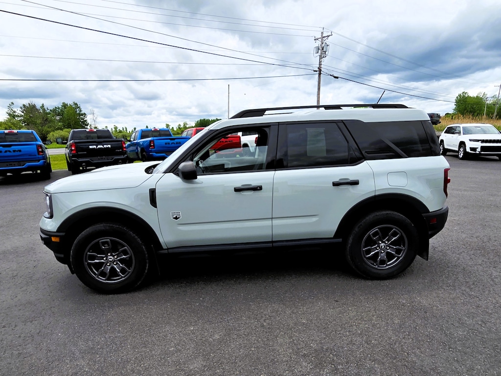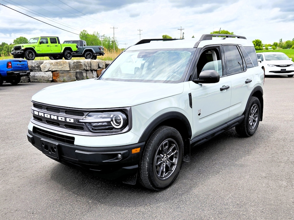 Cactus Gray 2022 Ford Bronco Sport Big Bend 4WD 8-Speed Automatic 1.5L EcoBoost Vehicle is equipped with: Class II Trailer Tow Package w/Trailer Sway Control, Convenience Package (Front Driver & Passenger Seatback Zipper Pockets, Heated Front Bucket Seats, Intelligent Access (Lock/Unlock), Leather-Wrapped Steering Wheel, LED Fog Lamps, Rear Parking Sensors, Universal Garage Door Opener (UGDO), and Wireless Charging Pad), Equipment Group 200A, 3.80 Axle Ratio, 4-Wheel Disc Brakes, 6 Speakers, ABS brakes, Air Conditioning, Alloy wheels, AM/FM radio: SiriusXM, AM/FM Stereo, Auto High-beam Headlights, Automatic temperature control, Brake assist, Compass, Delay-off headlights, Driver door bin, Driver vanity mirror, Dual front impact airbags, Dual front side impact airbags, Electronic Stability Control, Emergency communication system: SYNC 3 911 Assist, Four wheel independent suspension, Front anti-roll bar, Front Bucket Seats, Front Center Armrest, Front reading lights, Fully automatic headlights, Heated door mirrors, Illuminated entry, Knee airbag, Low tire pressure warning, Occupant sensing airbag, Outside temperature display, Overhead airbag, Overhead console, Panic alarm, Passenger door bin, Passenger vanity mirror, Power door mirrors, Power steering, Power windows, Radio data system, Rear anti-roll bar, Rear reading lights, Rear seat center armrest, Rear window defroster, Rear window wiper, Remote keyless entry, Roof rack: rails only, Rubberized Second Row Seat Backs, Security system, SiriusXM Radio, Speed control, Speed-sensing steering, Speed-Sensitive Wipers, Split folding rear seat, Steering wheel mounted audio controls, SYNC 3 Communications & Entertainment System, SYNC 3/Apple CarPlay/Android Auto, Tachometer, Telescoping steering wheel, Tilt steering wheel, Traction control, Trip computer, Unique Cloth Front Bucket Seats, Variably intermittent wipers, and Wheels: 17" Carbonized Gray-Painted Aluminum.