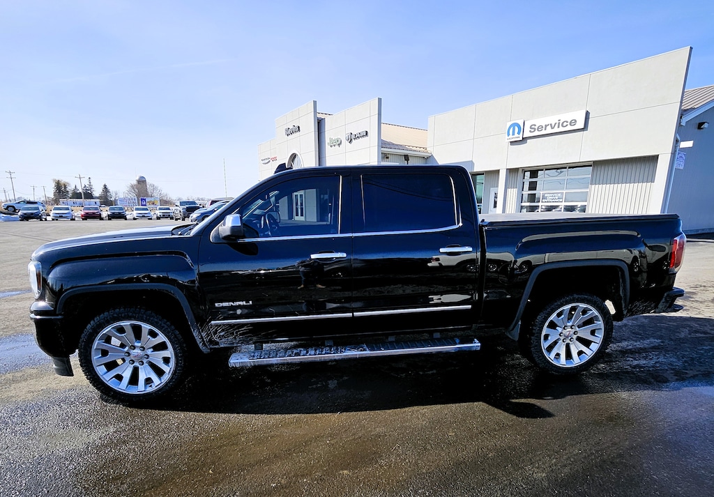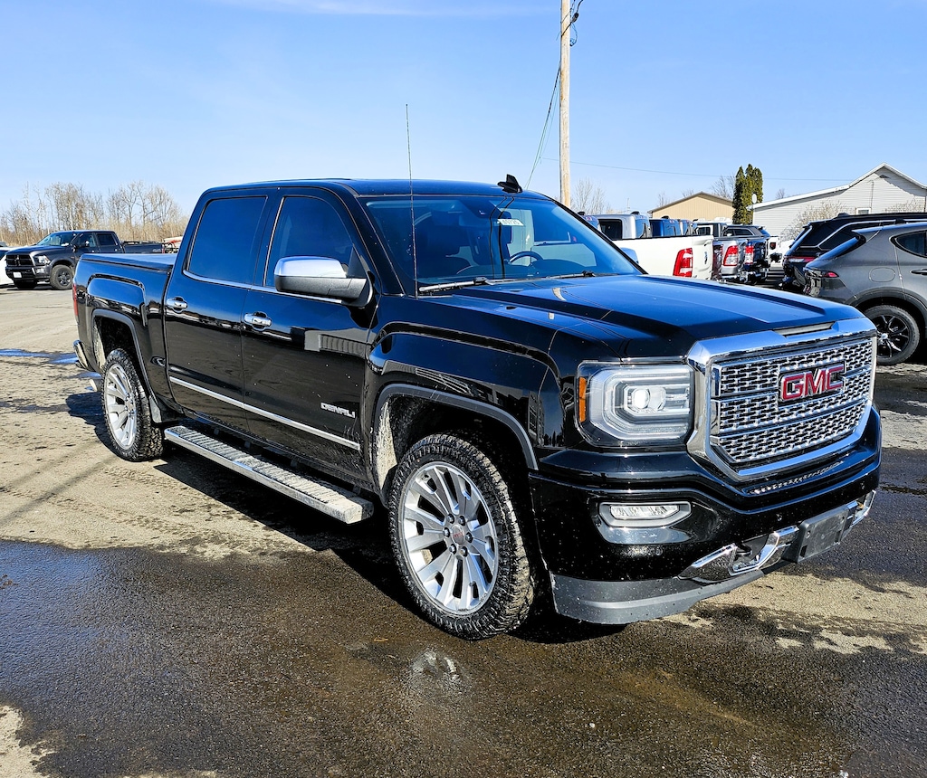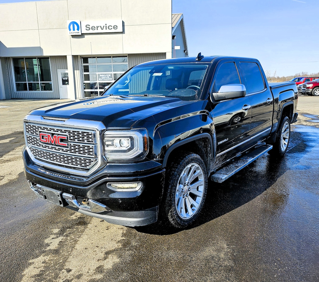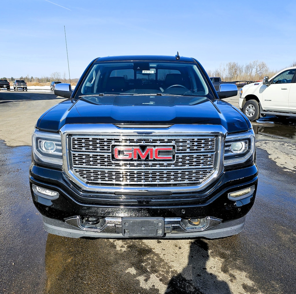Black 2018 GMC Sierra 1500 Denali 4WD 8-Speed Automatic with Overdrive EcoTec3 5.3L V8 Vehicle is equipped with: Enhanced Driver Alert Package (Forward Collision Alert, IntelliBeam Automatic High Beam On/Off Headlight, Lane Keep Assist, and Low Speed Forward Automatic Braking), Trailering Equipment, 110-Volt AC Power Outlet, 150 Amp Alternator, 1st & 2nd Row Color-Keyed Carpeted Floor Mats, 2-Speed Active Electronic AutoTrac Transfer Case, 3.42 Rear Axle Ratio, 4-Wheel Disc Brakes, 6" Rectangular Chromed Tubular Assist Steps, 7 Speakers, 8" Multi-Color Customizable Driver Display, ABS brakes, Adaptive suspension, Adjustable pedals, Air Conditioning, Alloy wheels, AM/FM radio: SiriusXM, Auto High-beam Headlights, Auto-dimming door mirrors, Auto-Dimming Inside Rear-View Mirror, Auto-dimming Rear-View mirror, Automatic temperature control, Body Color Lower Front Bumper, Body Color Rear Bumper w/Cornersteps, Bodyside moldings, Bose Speaker System, Brake assist, Bumpers: body-color, CD player, Chrome Bodyside Moldings, Chrome Door Handles, Chrome Mirror Caps, Color-Keyed Carpeting, Compass, Deep-Tinted Glass, Delay-off headlights, Driver & Front Passenger Illuminated Vanity Mirrors, Driver door bin, Driver vanity mirror, Dual front impact airbags, Dual front side impact airbags, Dual-Zone Automatic Climate Control, Electric Rear-Window Defogger, Electronic Stability Control, Exterior Parking Camera Rear, EZ Lift & Lower Tailgate, Floor Mounted Console, Front anti-roll bar, Front Center Armrest w/Storage, Front dual zone A/C, Front fog lights, Front Frame-Mounted Black Recovery Hooks, Front Full Feature Power Reclining Bucket Seats, Front reading lights, Front wheel independent suspension, Fully automatic headlights, Garage door transmitter, GMC 4G LTE, GMC Connected Access, HD Radio, Heated & Ventilated Front Bucket Seats, Heated door mirrors, Heated front seats, Heated steering wheel, Illuminated entry, Leather Wrapped Heated Steering Wheel, Low tire pressure warning, MagneRide Magnetic Ride Control Suspension, Manual Tilt/Telescoping Steering Column, Memory seat, Navigation System, Occupant sensing airbag, OnStar & GMC Connected Services Capable, Outside temperature display, Overhead airbag, Overhead console, Panic alarm, Passenger door bin, Passenger vanity mirror, Perforated Leather Appointed Seat Trim, Polished Exhaust Tip, Power Adjustable Pedals, Power door mirrors, Power driver seat, Power Folding & Adjustable Heated Outside Mirrors, Power passenger seat, Power Sliding Rear Window w/Defogger, Power steering, Power windows, Power Windows w/Driver Express Up & Down, Premium audio system: GMC Infotainment System, Radio data system, Radio: AM/FM/GMC Infotainment & Navigation, Rear 60/40 Folding Bench Seat (Folds Up), Rear reading lights, Rear seat center armrest, Rear step bumper, Rear Wheelhouse Liners, Rear window defroster, Remote Keyless Entry, Remote keyless entry, Remote Locking Tailgate, Remote Vehicle Starter System, Security system, Single Slot CD/MP3 Player, SiriusXM Satellite Radio, Speed control, Speed-sensing steering, Split folding rear seat, Steering Wheel Audio Controls, Steering wheel mounted audio controls, Tachometer, Telescoping steering wheel, Theft Deterrent System (Unauthorized Entry), Thin Profile LED Fog Lamps, Tilt steering wheel, Traction control, Trip computer, Turn signal indicator mirrors, Ultrasonic Front & Rear Park Assist, Universal Home Remote, Variably intermittent wipers, Ventilated front seats, Voltmeter, Wheels: 20" x 9" Bright Machined Aluminum, and Wireless Charging.